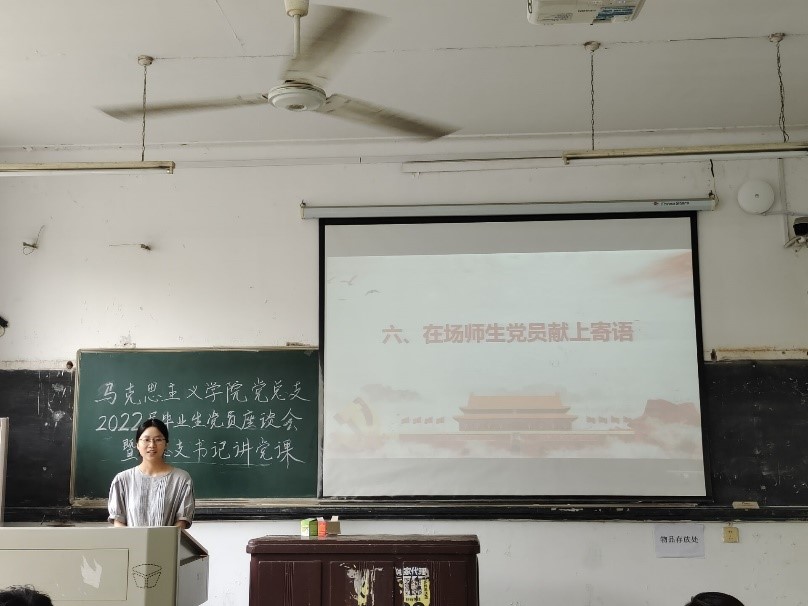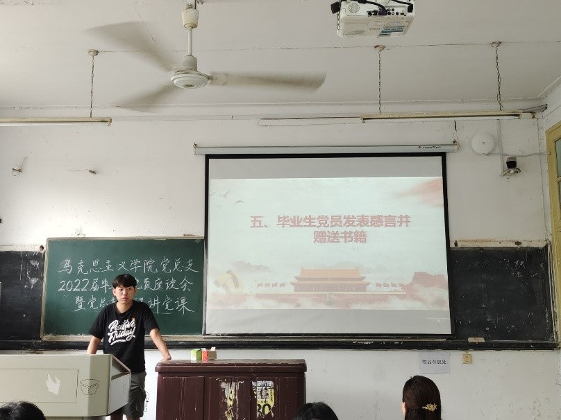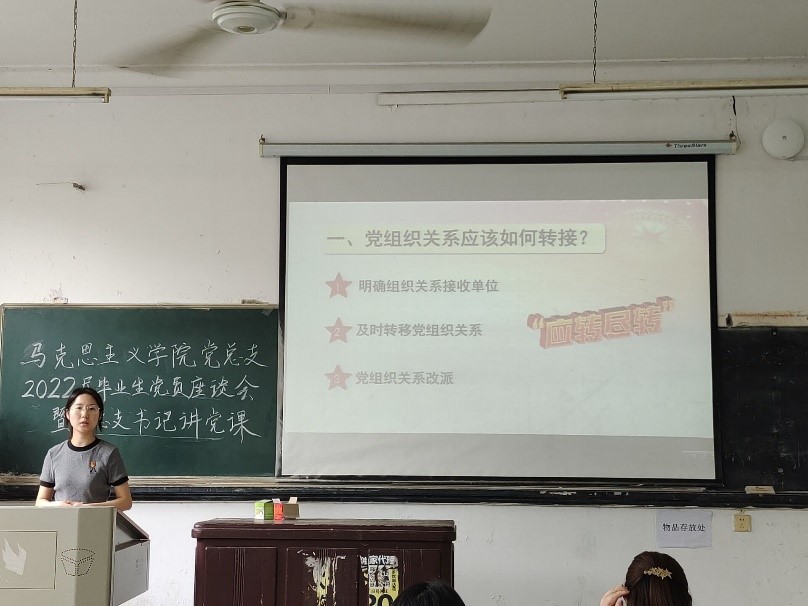 铭记百年党史,砥砺奋进前行。2022年6月2日,公司党总支2022届毕业生党员专题教育活动在1203教室开展。公司党总支书记徐章以“青春奋发 强国有我”为主题,为员工党员讲授党课。第三党支部全体师生党员、入党积极分子代表参加活动,活动由支部书记徐特主持。 活动伊始,党员们高声唱国歌,并重温入党誓词。 徐章书记从习近平总书记对广大青年的寄语入题,为党员们解读习近平总书记在庆祝中国共产主义青年团成立100周年大会上的重要讲话的时代背景、重要意义和理论内容。徐书记对全体党员提出了3点要求:一是定位要明,牢记自身党员身份,谨记自己的信仰和初心;二是责任要清,自觉践行党员义务,积极履行青年的社会责任和伟大历史任务;三是实践要稳,阶段性制定计划,树立目标,并稳步落实。她强调全体党员应坚持以习近平新时代中国特色社会主义思想为指导,深刻领会“两个确立”的决定性意义,增强“四个意识”,坚定“四个自信”,坚决做到“两个维护”,砥砺前行,奋发有为,以实际行动,迎接党的二十大。毕业生党员无论奔赴哪个岗位,都要不忘初心、牢记使命,争做先锋回报社会、回报母校,希望捷报频传。 ![]() ![]() 第三党支部书记徐特,从“党组织关系的转接”、“毕业生入党材料的转移”和“转移党组织关系的注意事项”三方面具体讲解毕业生党员组织关系的转接事项,为毕业生党员组织关系的转移保驾护航。 ![]() ![]() ![]() ![]() ![]() ![]() 党团百年华诞交界之际,公司党总支将引领广大师生党员继续加强学习,让理论落实于实践,学党史、悟思想、办实事、开新局,勇争时代潮流的奋斗者、开拓者! ![]() (责任编辑:admin) |