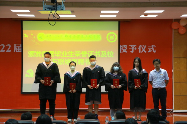 党委书记熊杰为优秀毕业生、优秀毕业论文获得者颁发荣誉证书。